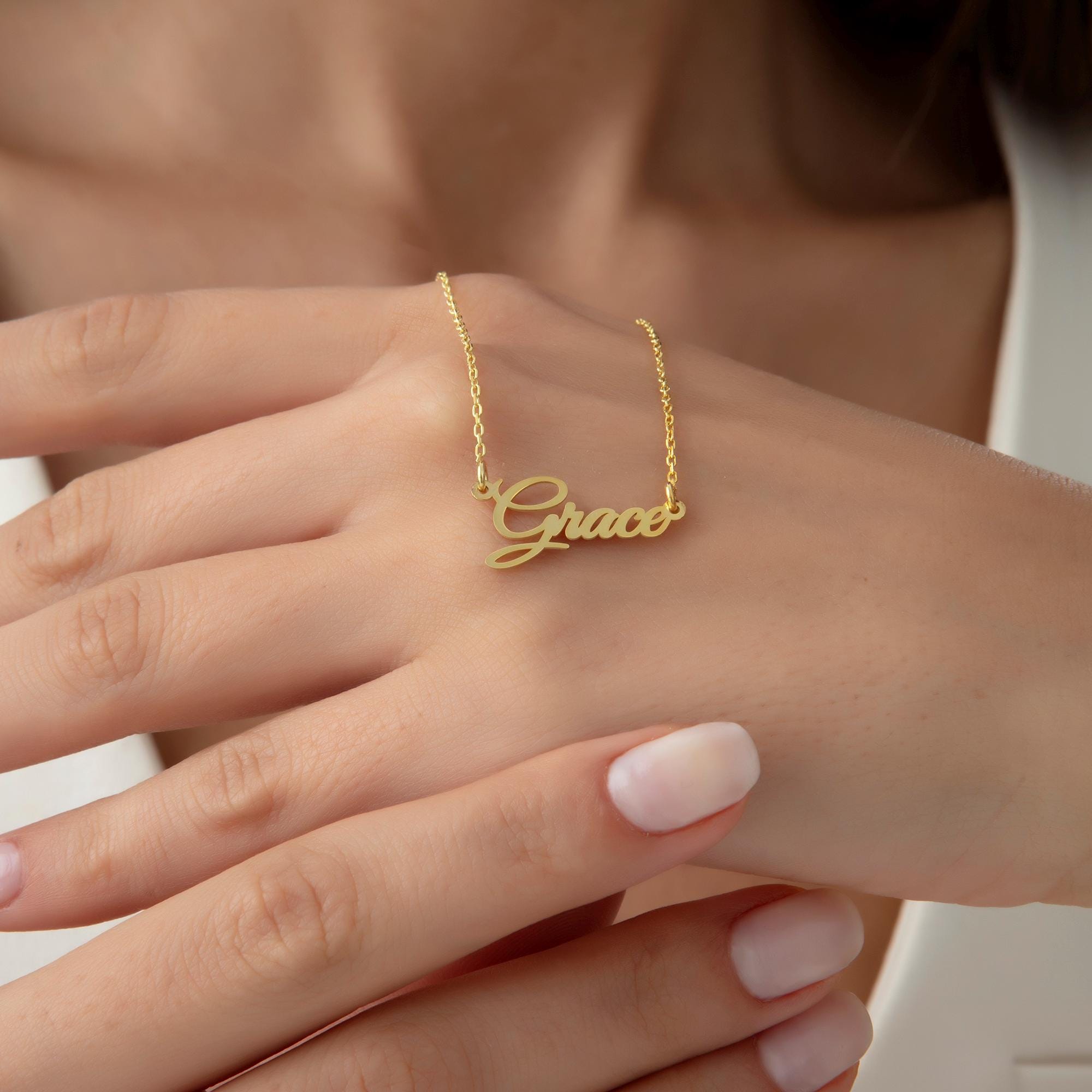 Custom Name Necklace, 14k Solid Gold Personalized Name Necklace, Dainty Nameplate Necklace, Christmas Gifts for Her, Gift for Mom Necklace